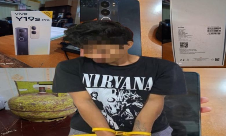 Barang bukti yang berhasil diamankan petugas antara lain, 1 buah kotak handphone, 1 unit handphone Vivo Y19 Pro warna hitam IMEI 1: 866675087017556 IMEI 2: 866675087017549 dan 1 buah tabung gas LPG 3 kilogram warna hijau.