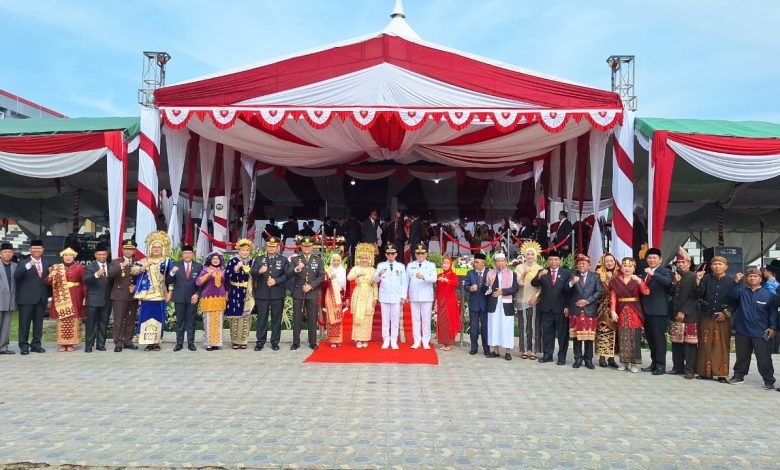 Baturaja – Momentum sakral peringatan Detik-Detik Proklamasi dan Pengibaran Bendera Merah Putih dalam rangka Hari Ulang Tahun (HUT) Ke-80 Kemerdekaan Republik Indonesia Tahun 2025 tingkat Kabupaten Ogan Komering Ulu (OKU), berlangsung khidmat di Taman Kota Baturaja, Kelurahan Kemalaraja, Kecamatan Baturaja Timur, Minggu (17/8/2025) pagi.