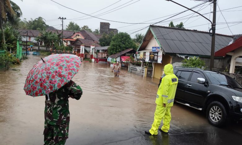 Dampak banjir di lokasi tersebut, 1 unit rumah terendam ±70 cm, 1 unit rumah terendam ±20 cm, Kantor KUA terendam ±50 cm.