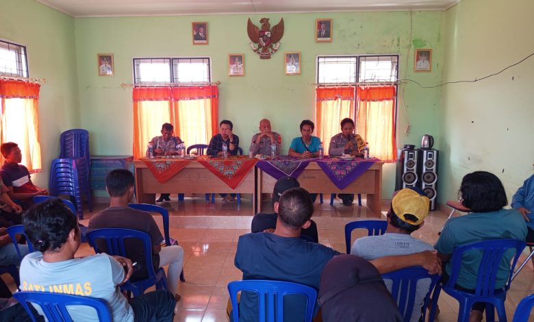 Baturaja- Polsek Peninjauan Polres Oku melakukan Sosialisasi Himbauan Kamtibmas terkait adanya keluhan para warga maraknya pelaku Pencurian di rumah dan Kebun Karet Warga Desa Mitra Kencana Sp. 7 Kec. Peninjauan Kab. OKU yang berlangsung di Kantor Desa Mitra Kencana. Selasa (05/08/2025). Siang.