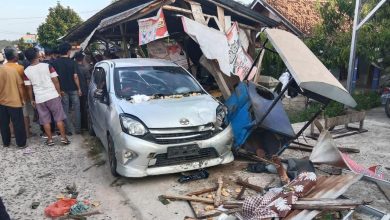 Belajar Mengemudi, Mobil Agya Tabrak Warung Gorengan di OKU, Enam Warga Terluka